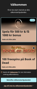 - Välj vilken insättningsbonus du vill acceptera (just nu free spins eller insättningsbonus). Du måste inte välja en bonus.